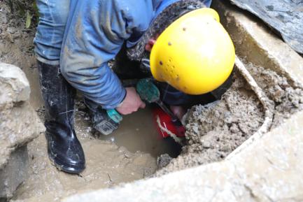因漏水量大,工作人員來不及更換雨鞋就緊急關(guān)閥止水,為了讓搶修速度更快,師傅們直接跳到1米多深的水泥坑里用鍬、鏟等各類工具開挖漏點(diǎn);拆卸、安裝、焊接,一刻也不停歇;抽干積水,清理路面。大家分工協(xié)作,經(jīng)過四個(gè)小時(shí)的奮力搶修,終于維修完畢,開閘通水。此時(shí),搶修人員的衣服、鞋子早已被水浸透,寒風(fēng)中,大家凍得瑟瑟發(fā)抖、雙手麻木通紅,但他們每個(gè)人的內(nèi)心都充滿了欣慰,因?yàn)樗麄冊谶@個(gè)飄雪團(tuán)圓的小年里,又一次用實(shí)際行動(dòng)給居民群眾送去了“放心水”。