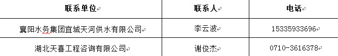 招標(biāo)人:襄陽(yáng)水務(wù)集團(tuán)宜城天河供水有限公司
